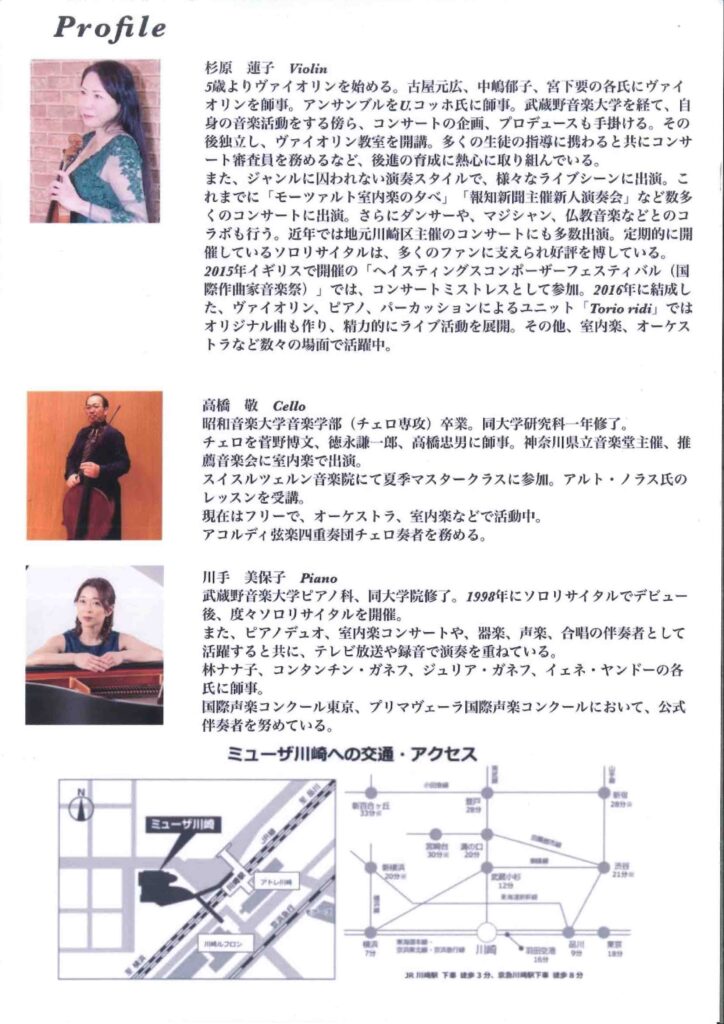 チェロクラス高橋先生がバイオリン杉原蓮子さん、ピアノ川手美保子さんとコンサートを開催します。ユニット名はTrio MiKeiRe 。今回で4回目のコンサートです。シューベルト、ラフマニノフ、バッハなど、お好きな方は是非!